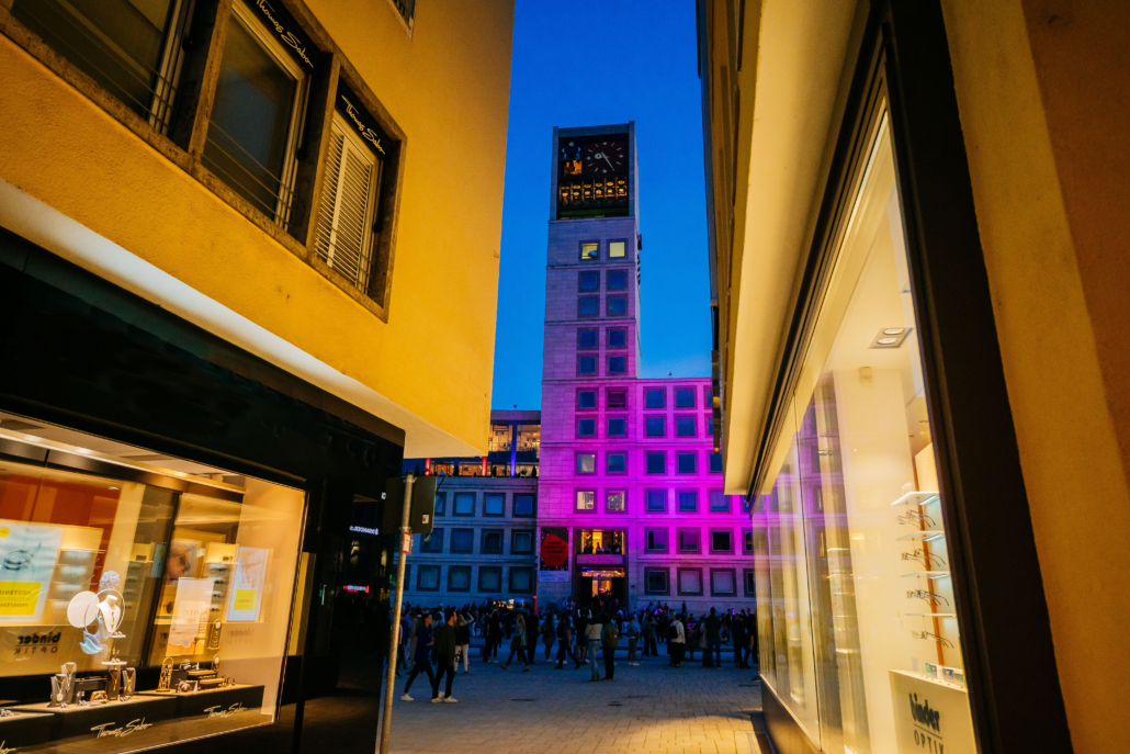 Für die erste „Lange Nacht der Museen“ nach zweijähriger Coronapause setzte die Stadt Stuttgart auf die technische Betreuung durch DOSONI-VT. Die Umsetzung war anspruchsvoll – unter anderem traten auf den zwei Bühnen des Rathauses verschiedene Tänzer*innen, Künstler*innen und ein DJ auf. Kunde und Künstler*innen waren bei uns technisch in guten Händen.